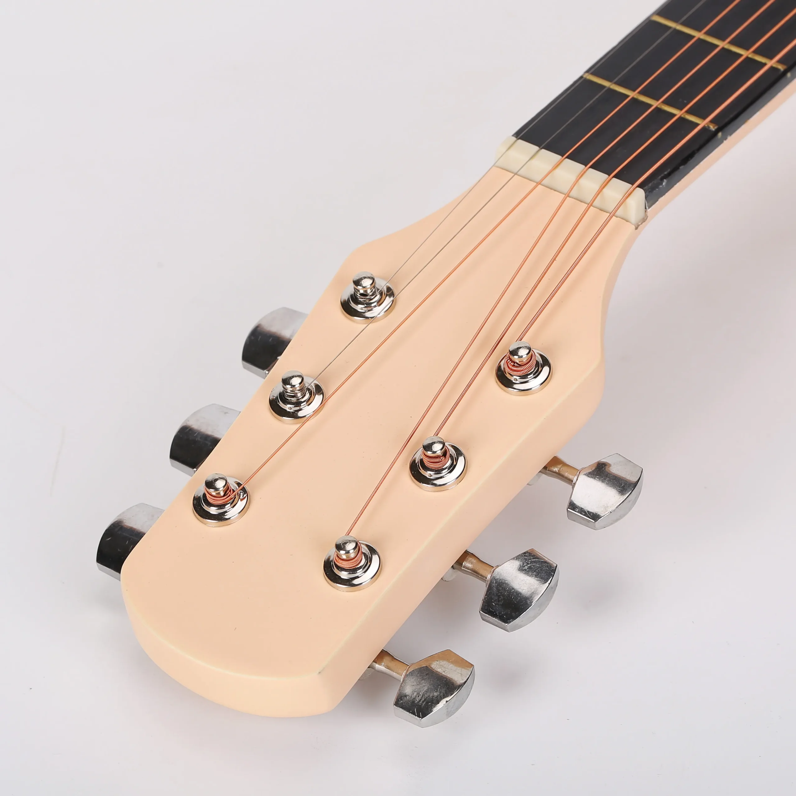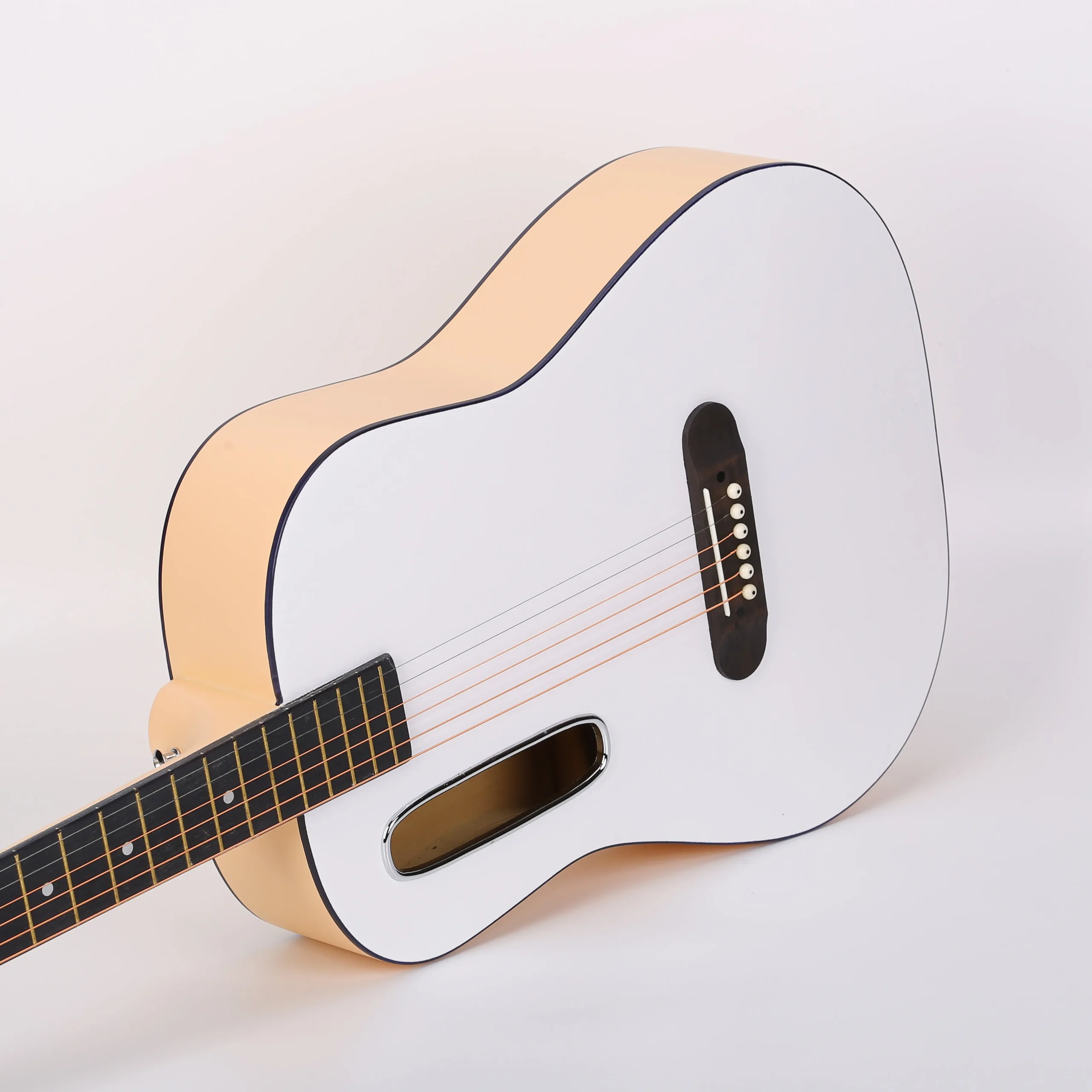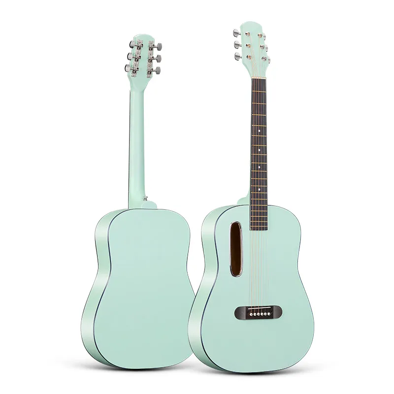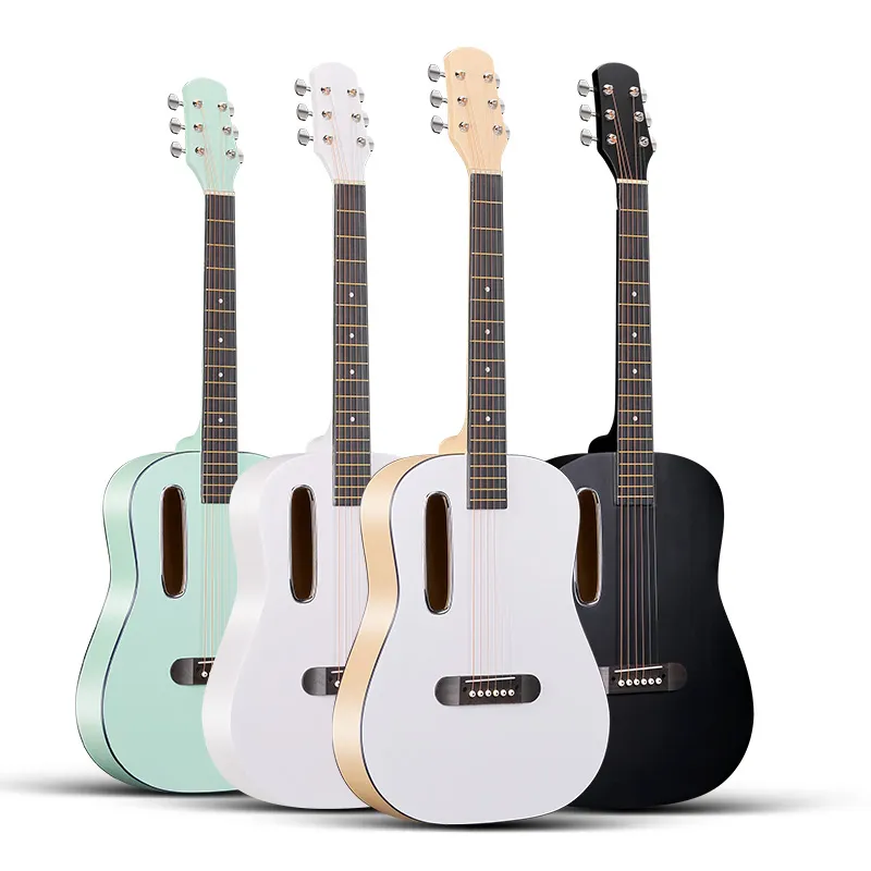 Our 39” custom acoustic guitars are designed for distributors and music retailers. Featuring a variety of bold colors like mint green, black, white, and more, these guitars provide great sound quality and aesthetic appeal for players of all levels.